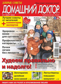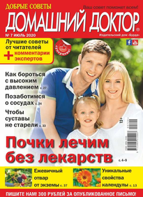 «Добрые советы. Домашний доктор» — это народный журнал о здоровье, уникальный и непохожий на другие издания медицинской тематики. А все потому, что основу журнала составляют письма читателей. В них авторы рассказывают свои истории исцеления, делятся рецептами народной медицины, проверенными на собственном опыте, просто обращаются друг к другу за помощью или дают советы тем, кто не может самостоятельно справиться со своим недугом.