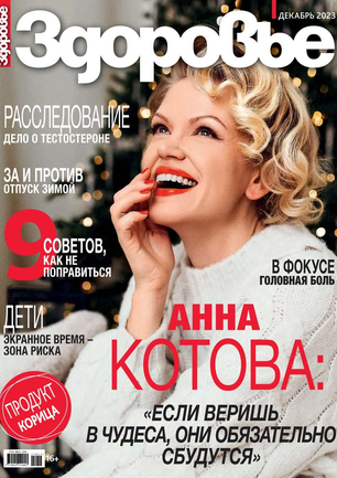 "Здоровье" – это первый и главный российский журнал о здоровом образе жизни. Издается ежемесячно с января 1955 года.Сегодня "Здоровье" – яркий и интересный журнал о том, как достичь физического и эмоционального благополучия, не болеть, всегда сохранять прекрасную форму и высокий жизненный тонус. Мы считаем, что здоровье – это ключ к удовольствиям, а забота о себе – важная и приятная часть жизни. Красота, antiage, полезная еда, фитнес, здоровые привычки, психология, новейшие медицинские открытия, детское здоровье – вот основные темы, которые интересуют нас и наших читателей.