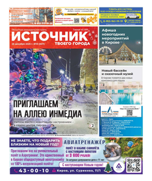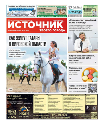 Еженедельная газета «Источник твоего города» распространяется в Кировской области. На страницах издания публикуется актуальная и полезная информация.