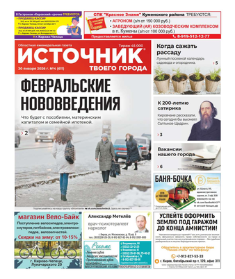 Еженедельная газета «Источник твоего города» распространяется в Кировской области. На страницах издания публикуется актуальная и полезная информация.